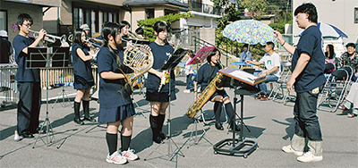 同まつりには県立二宮高校(三橋史朗校長・生徒数835人)の吹奏楽部が初出演。中間テスト期間のなか、1年生から3年生まで部員10人が訪れ「上を向いて歩こう」や、アンコールにも応えて「島唄」を披露した。部長の野口瑠美さん(2年)は「外で気持ちよく演奏することができた。(出演依頼の)声をかけていただき、部員一同とても嬉しい」と話していた。