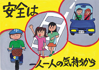大会では交通安全活動に尽力した矢部良子さんと四十井英子さん、中村晴夫さん、長者町地区の長栄会に中崎町長から表彰状が贈られた。小学生を対象に作品を募集した交通安全ポスターの入賞者表彰も実施。今年度は472人が応募し、大磯町交通安全ポスターに国府小学校6年・今井未佳さんの作品=写真(下)=が選ばれた。