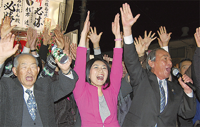県内小選挙区では自民党として初の女性議員となった牧島氏。選挙事務所で支持者らを前に「丁寧に、まっすぐに政策を打ち出し、ぶれずに芯のある政治をしたい」と抱負を語った。