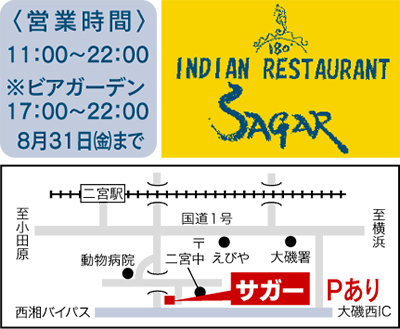 インド料理サガーで8月末迄