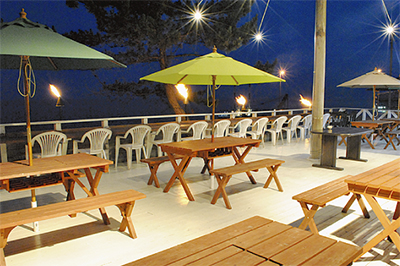 ビアガーデンは雨天休み。大磯にある本店の老舗食堂『えびや』でも宴会を受け付けており、3千円以上の料理で10人からマイクロバス送迎をしてくれる。