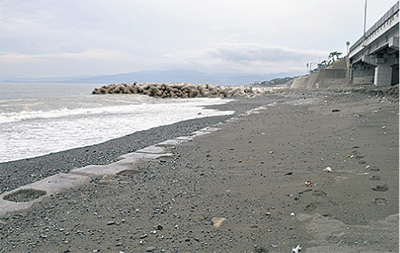 利用できるようになったのは、金波橋(同バイパス二宮インターチェンジ)付近から袖が浦公園下までの海岸。二つある突堤の間の約200m区間。消失した砂浜をよみがえらせるために県が一昨年から養浜工事に取り組んでおり、砂浜が回復しつつあるという。