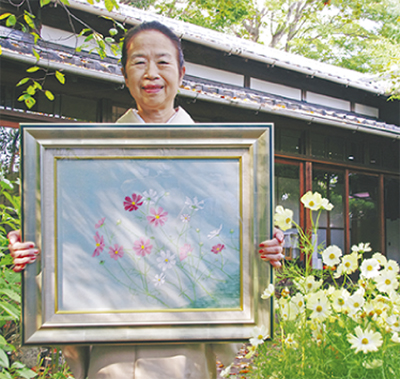 主婦業の傍ら、25年以上制作活動を続けている工藤宜子さんの作品展。会場では自宅の庭に生った柿や裏山の筍のほか、秋海棠(しゅうかいどう)やコスモスなどの身近な植物を描いた15点ほどの作品が並ぶ。「毎年違った表情を見せる草花と向き合って仕上げた作品。淡い色合いの水彩画と、奥行きと重厚感のある日本画をお楽しみください」と工藤さん。期間中は工藤さんが在廊する。