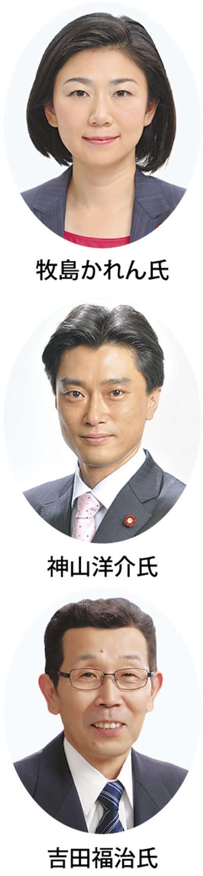 これまでに立候補の意思を表明しているのは、前職で自民党の牧島かれん氏(38)、元職で民主党の神山洋介氏(39)、新人で共産党の吉田福治氏(59)。