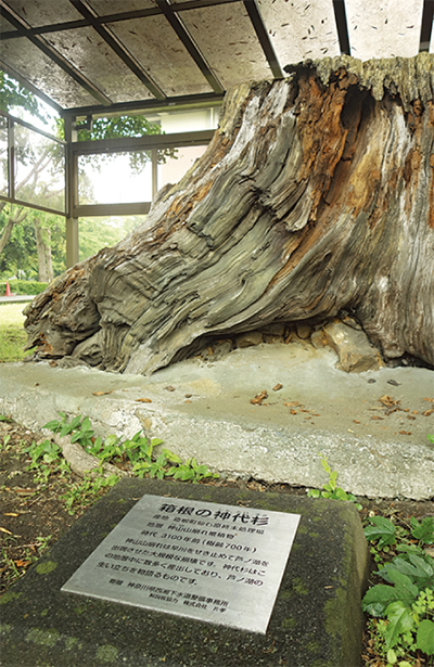 同館学芸員によると、現在箱根山で起きていると推測されるのは、神山山崩れと同じ水蒸気爆発と呼ばれる種類の噴火だ。神山山崩れの影響で早川がせき止められ、現在の芦ノ湖を形作ったという。噴火などの影響で土に埋まり化石状態となった木を「神代杉」と総称するが、同館の駐車場には神山山崩れによるとされる神代杉が展示されている。