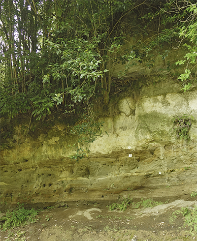 大磯丘陵における箱根火山灰の地層は20mほど掘り下げると確認することができ、平塚市内では土屋、根坂間などで、特徴的な黄色・白・黒と縞模様状になった地層が見られるという。