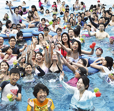 大磯ロングビーチ(大磯町国府本郷 【電話】0463・61・7726)のオープニングセレモニーが7月4日、同ビーチ内の波のプールで実施された。