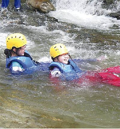 同研修会には、ジュニアリーダーを目指す町内在住の中学生から20歳までの青少年ら総勢30人が参加。火起こしや野外炊事、リバートレッキング・ボディラフティングなどを体験し、共同生活の中で自主性や協調性などについて学んだ。