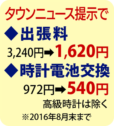 タウンニュース提示で出張料半額