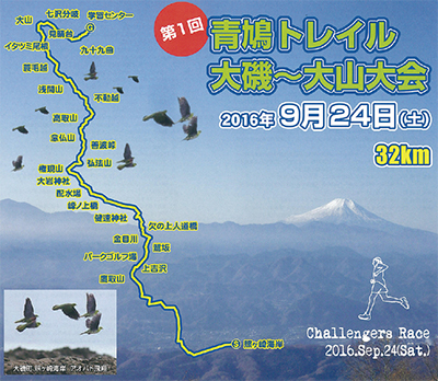 大磯町の照ヶ崎海岸をスタート地点にしたトレイルランニング大会「第1回青鳩トレイル大磯〜大山大会」が、9月24日(土)に開催される。大会名に大磯町の鳥に指定されているアオバトの名を冠し、アオバトのねぐらとされる丹沢山塊の霊峰大山を目指して全長32Kmのコースを駆け進む。