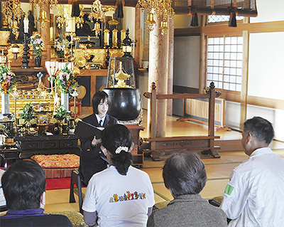 大磯町の東光院で3日、「お話朗読会」が開かれた。星槎学園高等部湘南校の生徒や大磯町立図書館の読み聞かせボランティアらが、静謐な本堂に名作文学の朗読を響かせた。