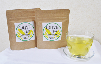 オリーブ栽培では2月から3月にかけて枝を剪定する。茶葉は、これまで廃棄していた剪定枝を利用した副産物で、静岡県の技術者に製茶加工を委託。乾燥葉を焙煎した茶と、葉を蒸してから焙煎した茶の2種類ができたという。昨年11月、ふるさとまつりで試飲を実施。味や販売価格などについて来場者にアンケートを行い、商品化を進めた。