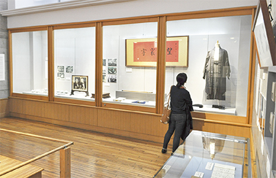吉田元首相が寄贈した大磯中学校体育祭の優勝カップ、地元子ども会の旗といった展示物からは、地域との交流を大切にした人柄がうかがえる。身に着けていた羽織や袴、米寿のお祝いに昭和天皇から下賜(かし)された杖をはじめ、愛煙家ぶりを物語る葉巻入れや灰皿、マッチ箱など、往時の暮らしを偲ばせる身の回り品も数多く並ぶ。
