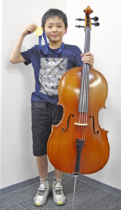 二宮小学校5年の藤原寛太君が、大阪府で行われた「第17回泉の森ジュニアチェロコンクール」小学生の部で金賞を受賞した。藤原君は「自分が納得できるものを本番の演奏で出し切ることができた」と、コンクール初出場での快挙を喜んだ。