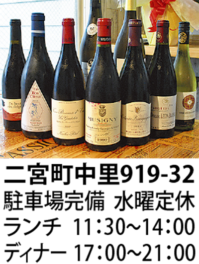 ワイン好きなシェフが腕をふるうフレンチレストラン「NANASHINO」が、二宮町にオープンした。肉や魚メニューにも町内産の有機野菜をふんだんに使った料理は、女性に大好評。