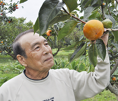 大玉柿は生産量が少ないことから市場に出回らず、農家の庭先や直売所、固定客への宅配で販売。11月26日にJA湘南大磯支所駐車場で開催される「大磯ふれあい農産物まつり」で大玉柿の試食販売を実施する。