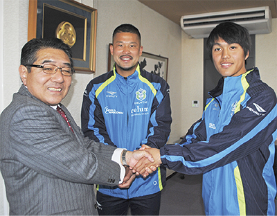 サッカーJ1の湘南ベルマーレに所属する選手が2月9日にホームタウンの各市町を訪れ、24日から開幕する新シーズンでの活躍を誓った。