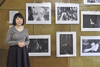 「闇夜桜月」と題したこのシリーズ作を出展したのは、同町在住の写真家じえ紗友梨さん(36)。「桜の樹の下には屍体が埋まっている!」とつづった梶井基次郎の短編小説の世界を写真で表現した。「美と汚れたものとの対比、美しさへの畏怖や耽美的な死生観を作品に込めました」と話す。