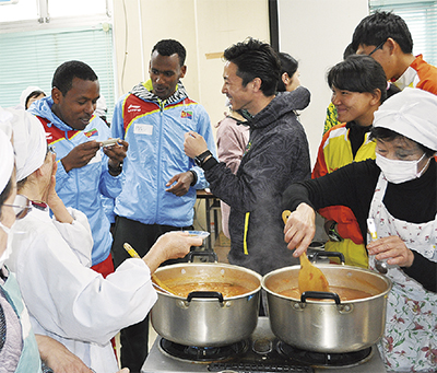 交流会に招かれたのは、星槎国際高等学校湘南に通うエリトリアからの留学生2人とブータンの留学生3人。5人は陸上競技やアーチェリー競技で東京五輪出場を目指し、日々練習に励んでいる。
