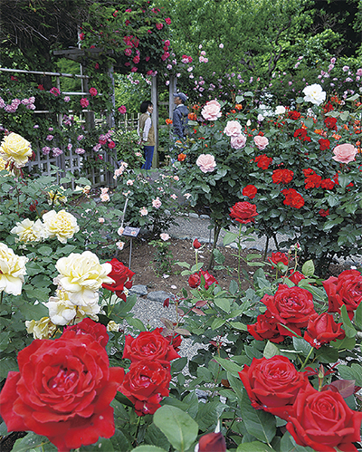 大磯町の大磯城山公園旧吉田茂邸地区内に整備されているバラ園のバラが、今年も色とりどりの花を咲かせている。