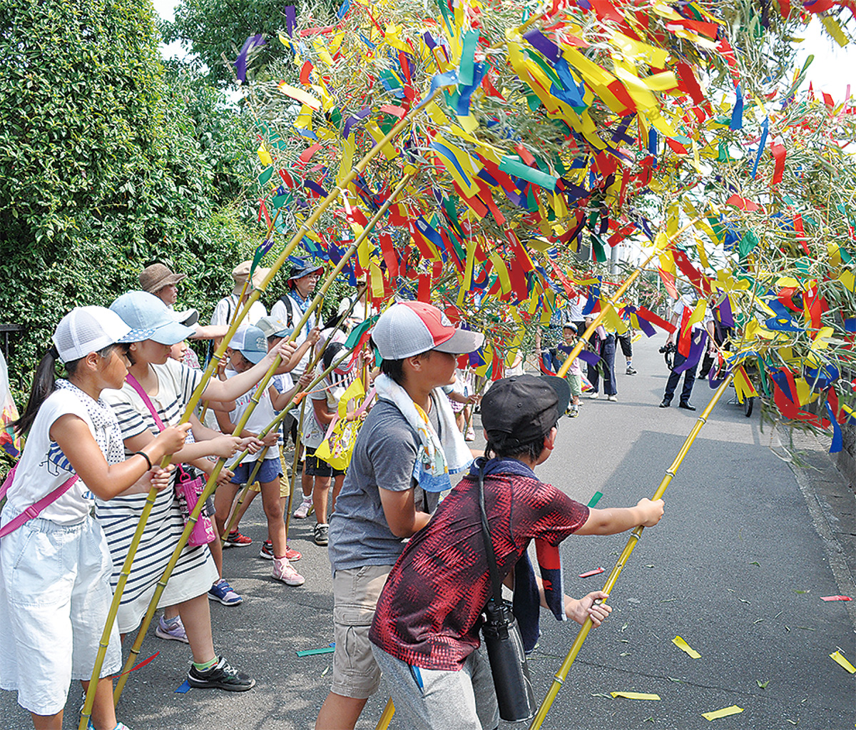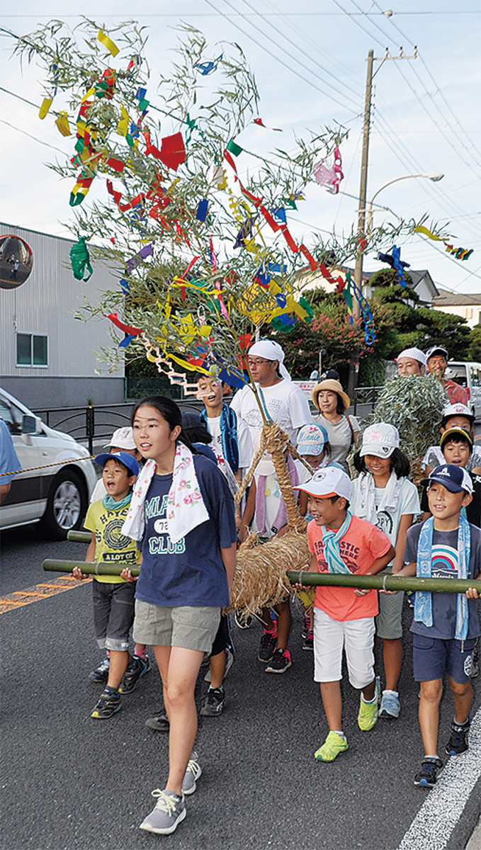 大磯町西小磯に伝わる七夕行事が、今年も8月に行われた。地区内の穢れ祓いや農作物の豊作を願う雨乞いなどを祈念して地区の子どもたちが行う行事で、国と県の無形民俗文化財に指定されている。西小磯の東地区と西地区で行われる日程や内容が一部異なる。