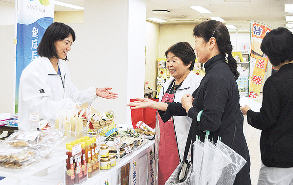 二宮ブランド認定商品のPRと消費拡大を図る直売会が、スーパーマーケットのザ・ビッグ二宮店で9月29日に催された。