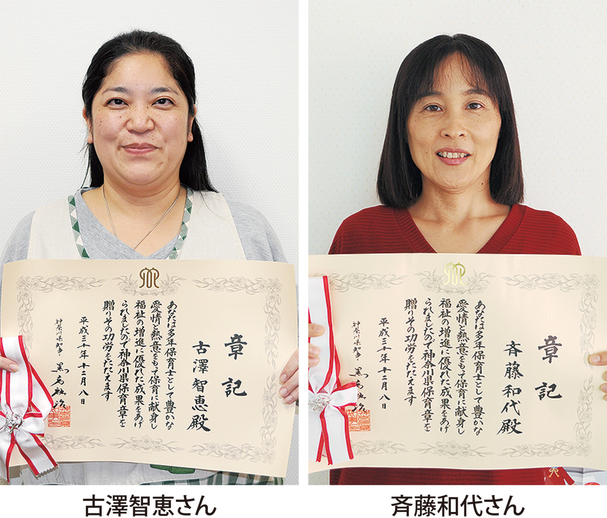 県内の児童福祉施設に勤務する模範的な保育士を表彰する「平成30年度神奈川県保育賞」の受賞者8人がこのほど発表された。大磯からは町立国府保育園の斉藤和代さんと、エリザベス・サンダース・ホームの古澤智恵さんが選ばれた。