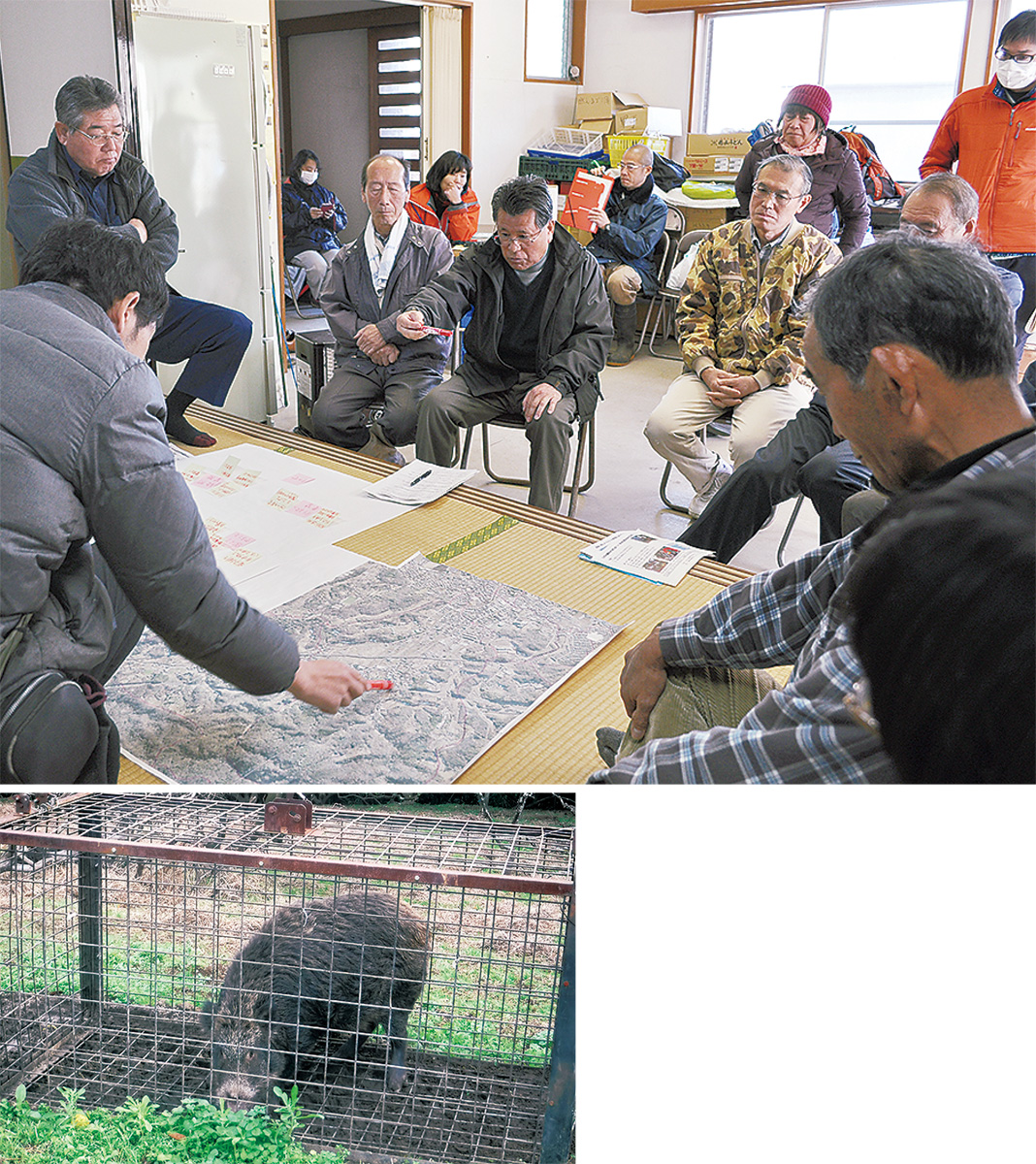町では「餌が自由に食べられる状況で罠を設置しても効果が薄い。まずは電気柵の設置や果樹の落果を放置しないなどイノシシに餌を与えない環境づくりが必要」と話している。