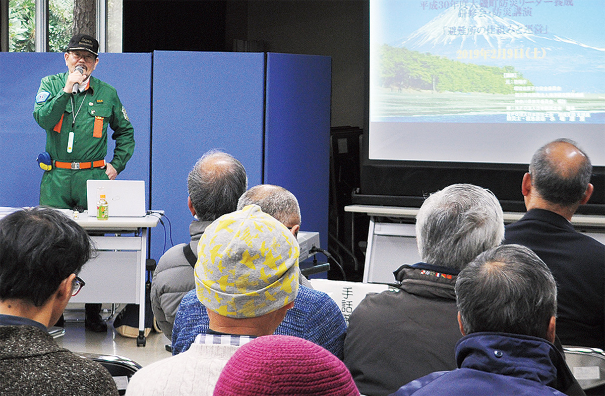 大磯町保健センターで2月9日、避難所の仕組みや運営方法などについて専門家から学ぶ「大磯町防災リーダー養成研修会・防災講演会」が開かれ、町民約80人が参加した。