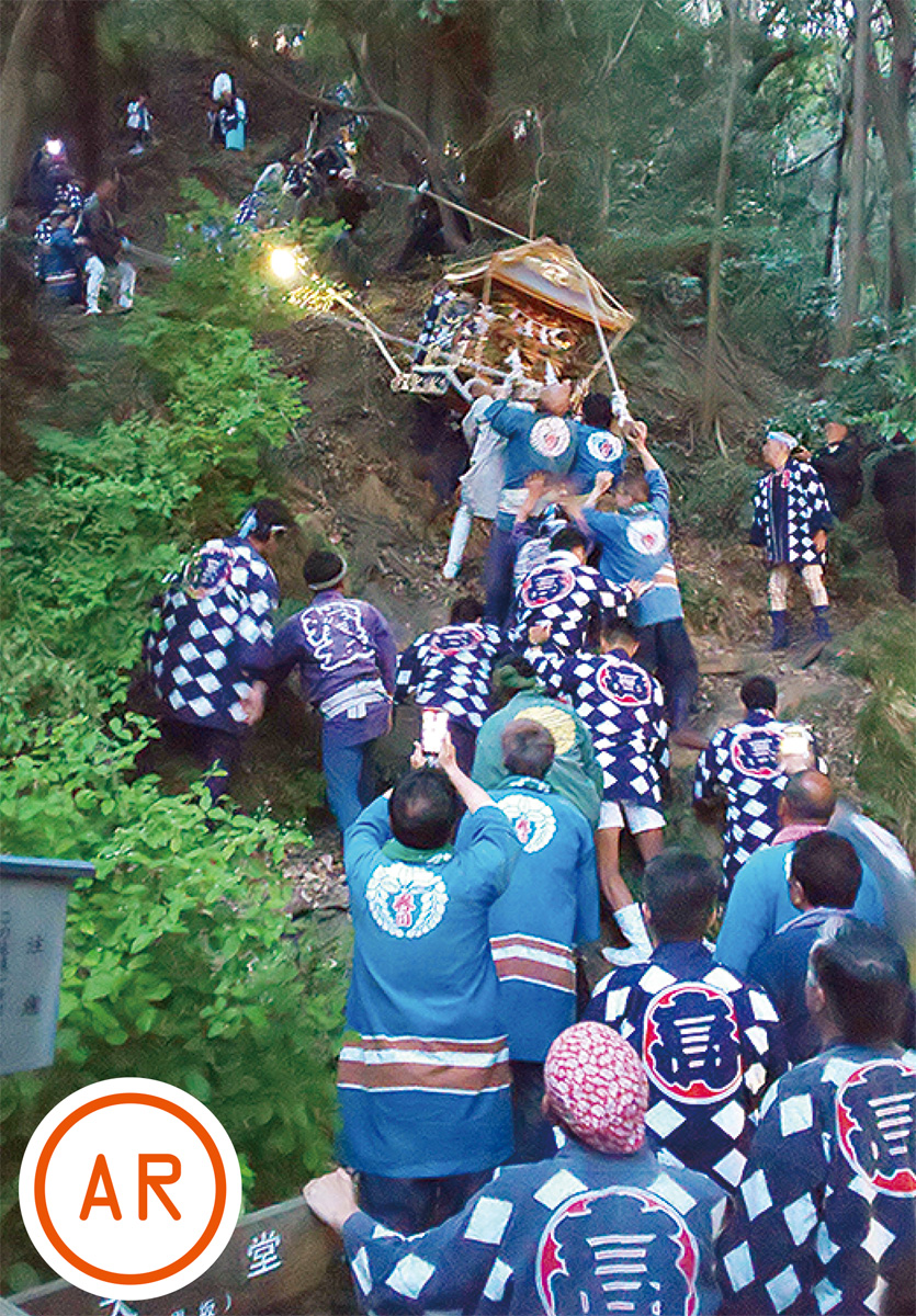 江戸時代の寛永年間に始まったといわれる山神輿は、高来神社の御霊を神輿に乗せて高麗山山頂の上宮まで急峻な坂を登って行く神事。町の指定民俗資料(無形民俗文化財)にもなっている。