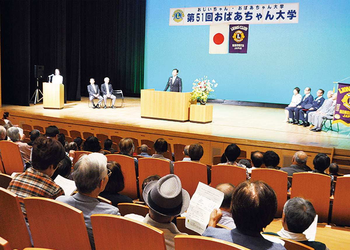 同クラブが設立時から継続している事業で、今年で51回目。当日は山本会長の「令和1回目の大学にご入学頂きありがとうございます。長寿の里、二宮でぜひ元気に長生きをしてください」という挨拶で開校した。参加者は、大磯警察署による交通事故や詐欺被害に遭わないための方法についての講義を受けた後、日本舞踊の団体やものまね芸人のステージを楽しんだ。