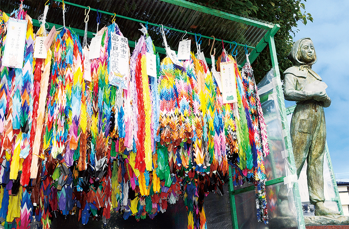二宮町の小中学校と二宮高校の児童・生徒、老人クラブや同町と交流のある長野県高山村ほか町内外の個人・団体が平和を願い、折り鶴を作製。実行委員会と同高校家庭科部の生徒らが、糸を通して千羽鶴に仕上げた。