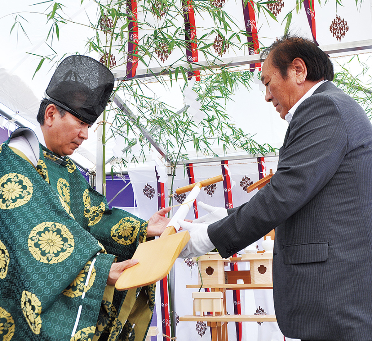 大磯港を核とした地域活性化を目的に整備される「大磯港賑わい交流施設」の起工式が、8月29日に建設予定地で開催された。工事の安全を願い施工業者の匠建設株式会社=平塚市=が主催し、県や町、関係団体などから約70人が出席した。