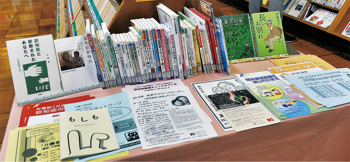 並んでいるのは、映画化もした小説『長いお別れ』(中島京子著)や絵本『ばあばは、だいじょうぶ』(原作・楠章子、挿絵・いしいつとむ)をはじめ、認知症の当事者や家族を対象にしたガイドブックなど約40冊。いずれも閲覧・貸出が可能。コーナーには認知症のチェックができるチラシも設置している。9月末まで。問い合わせは同館【電話】0463・61・3002。