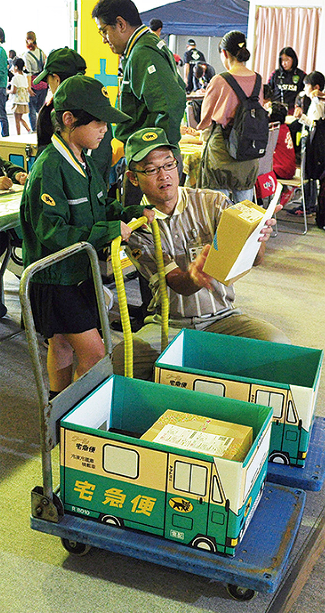 大磯町内で事業を営む店舗や団体の協力で過去最大46の体験ブースが並んだ今回、子どもたちは会場内の「ハローワーク」で仕事を探して、飲食物の販売や自動車整備、宅配便、マッサージなどの各ブースで働き、発生した給料(通貨単位『ぷち』)から10%の税金を差し引かれた報酬を「銀行」で受け取ると、今度は各ブースで買い物を楽しむ側に回った。