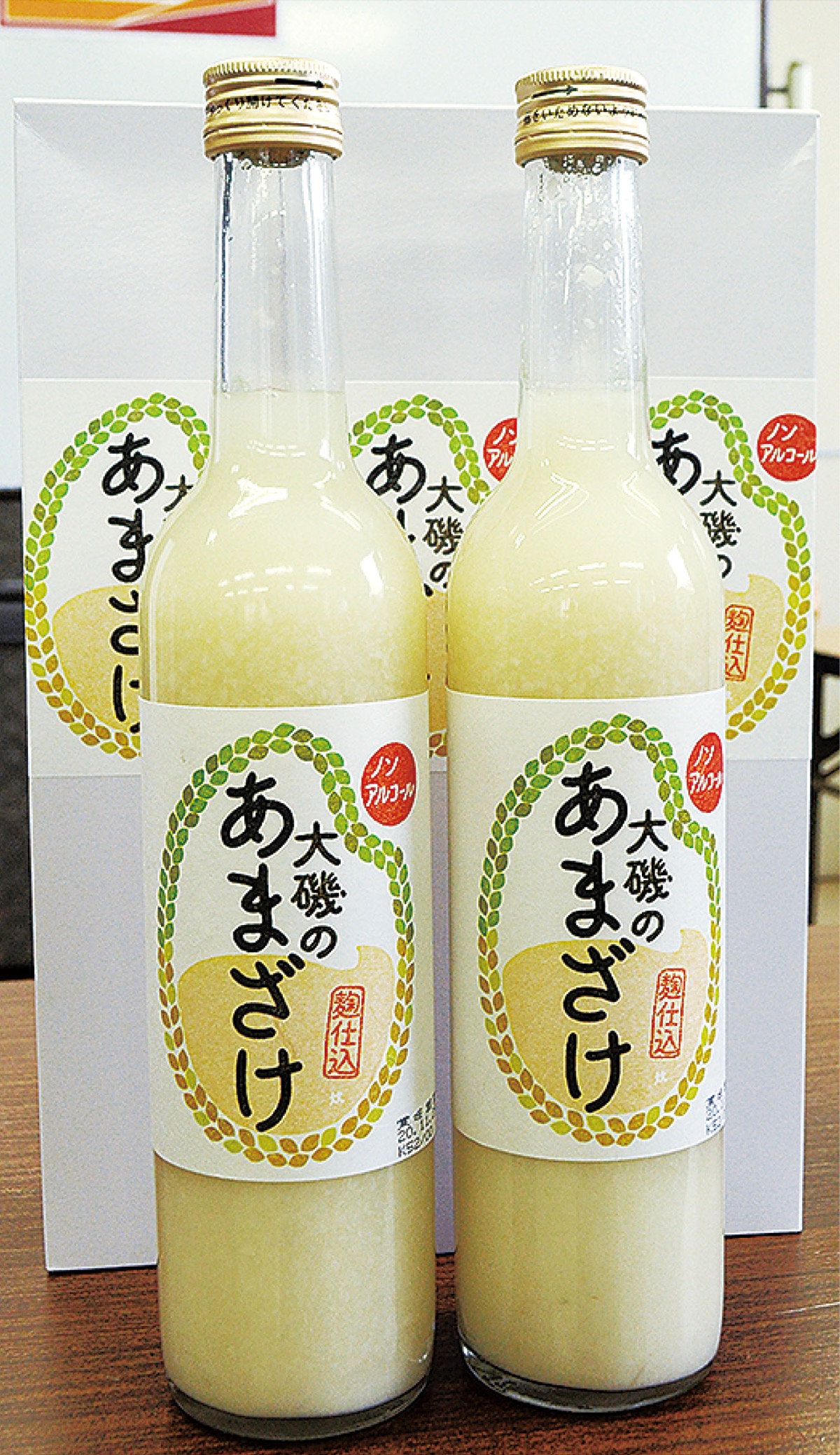 栄養価の高さから「飲む点滴」とも呼ばれブームが続く甘酒。販売が始まった「大磯のあまざけ」は、同町生沢・寺坂地区の田んぼで今秋に収穫されたキヌヒカリを原材料に、大分県の蔵元で製造された。米と米麹のみを使用し、砂糖や添加物を含まない昔ながらの製法で造られた甘酒は、米の甘さやツブ感がありながらスッキリとした後味が特徴。ブドウ糖やビタミンなどを豊富に含み、酒粕由来の甘酒と違いアルコールを含まないため子どもや妊婦でも安心して飲める。「甘酒は冬に飲むものというイメージがあるが、江戸時代には庶民の手軽な栄養補給として主に夏に親しまれていた。また旅人も茶屋で甘酒を飲んでおり、東海道の宿場町だった大磯で甘酒が販売できるのは運命的」と蔵元。