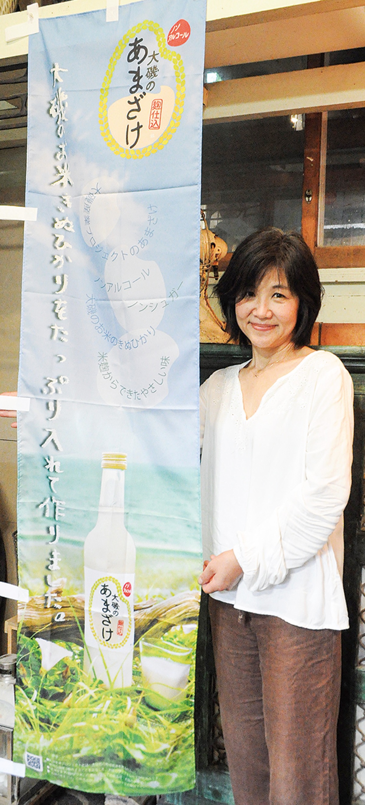 大磯町商工会商業部会が、地域資源を生かした商品開発の第一弾として昨年12月に販売を始めた甘酒。町内の商店やカフェなどで扱っているほか、大磯市(いち)でも地元の特産品としてPRしてきたが、販売場所の目印となるものがポスターしかなかった。同会は地元でデザイン事務所を営む高田聖子さんにのぼり旗の製作を依頼。このほど30枚が完成した。