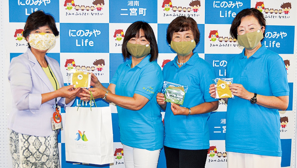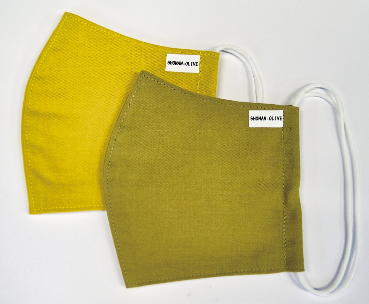 二宮町で栽培されているオリーブの葉と枝で布を染め、商工会女性部がマスクを製作した。ご当地マスクで「湘南オリーブ」と町を広くPRする。特産品を生かした加工製造や商品開発などのヒントとして事業化を目指す人の後押しもしていきたいという。