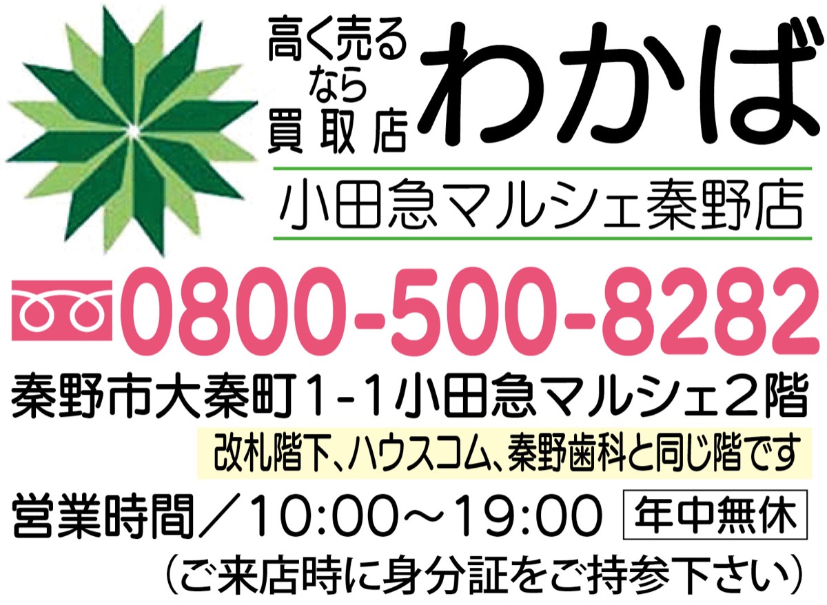 宅配・出張・店舗と多様な買い取りスタイルが好評の「買取店WAKABA小田急マルシェ秦野店」では、ルイヴィトンのバッグ・ポーチの買取強化中!「タウンニュース見た」と伝えると、どんな状態や古さでも買取金額4000円を保証してくれる。期間は2月28日(日)まで。