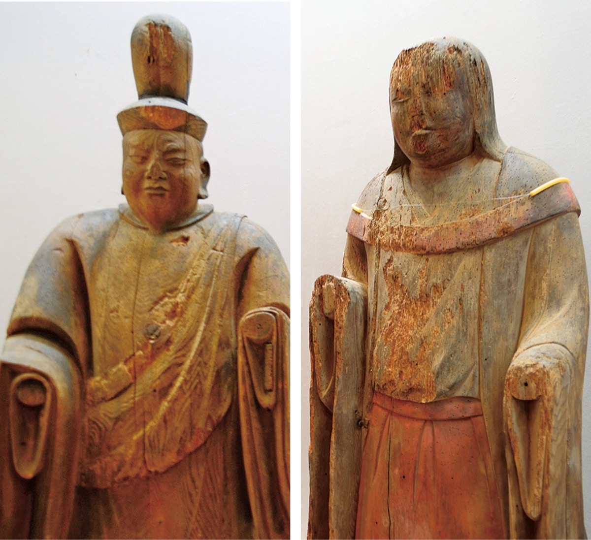 21年前に高来神社の床下から偶然発見された木造神像11躯を展示する企画展が、大磯町郷土資料館で6月20日(日)まで開催されている。神像は鎌倉時代に製作されたもので、発見時に損傷が激しかったことから同館が預かり、約20年をかけて保存処理(修理)を施していた。保存処理後に11躯すべてが展示されるのは、今回が初めて。町指定文化財。