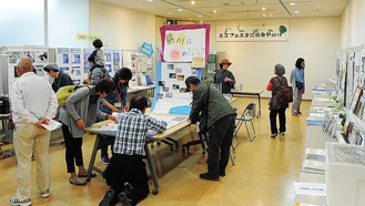 町民団体と企業、行政ほか17団体が、環境保全や再生可能エネルギー、農業などの活動に関する展示を行う。約30年前の二宮町を2500分の1で表したジオラマも展示。リサイクルバザー、寄付された食品を必要とする人が受け取れるフードパントリー、カフェなどもある。