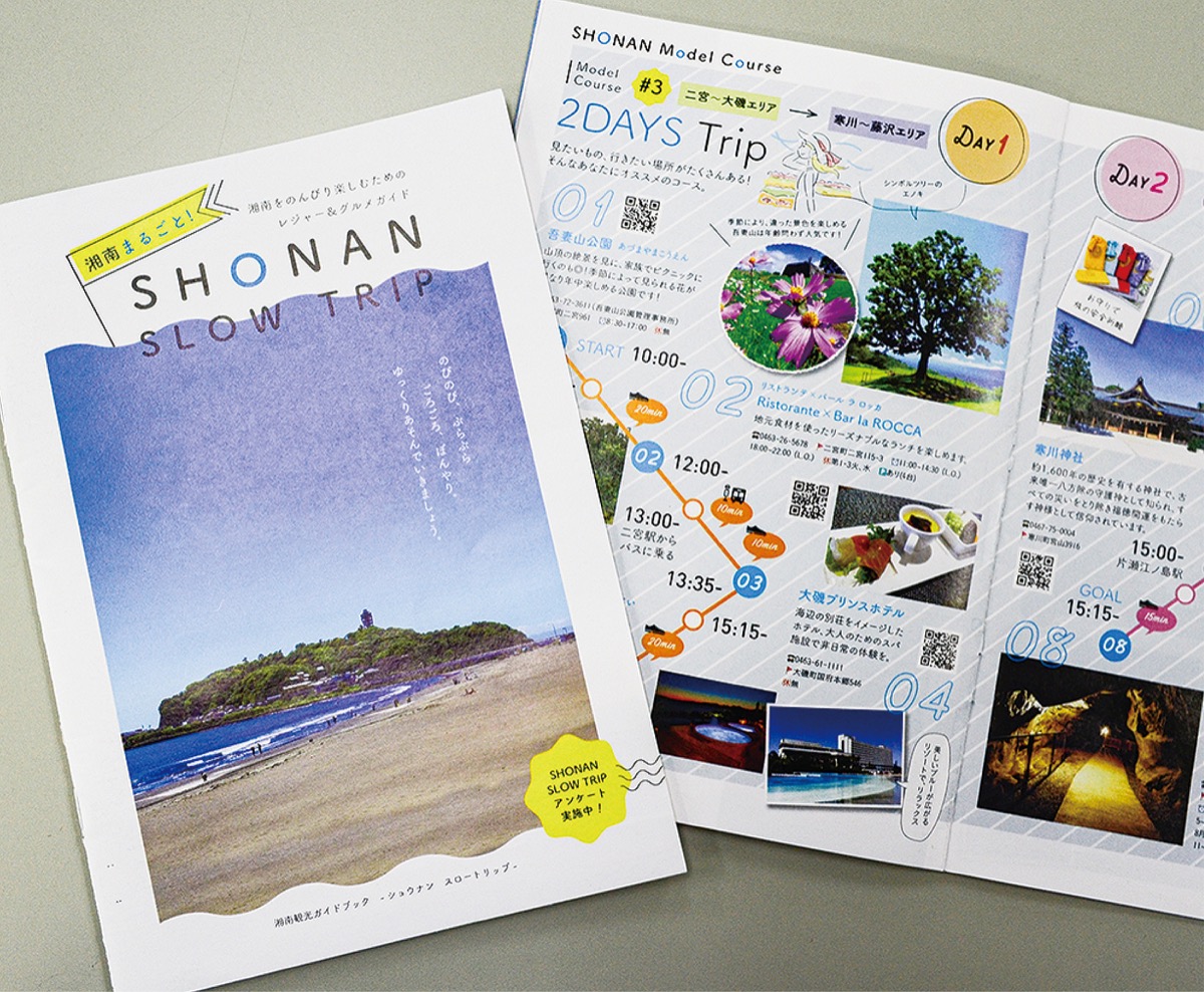 湘南エリアの観光名所や穴場をのんびり楽しんでもらおうと、ガイドブック『SHONAN SLOW TRIP』を湘南地区観光振興協議会が発行した。遠出や県境をまたぐ旅行がしづらい今、地域住民も湘南の魅力を再発見するのに役立つ情報を盛り込んでいる。