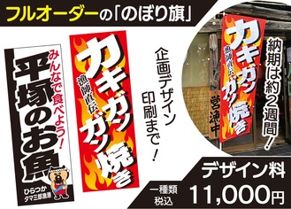 コストが安い、軽くて設置が簡単、シンプルに目立つなどの理由から飲食店をはじめ、様々な業種の店頭に設置されている「のぼり旗」。タウンニュースのグループ会社「タウンニュース・ロコ」では、専属デザイナーがレイアウト作りから印刷までワンストップで製作する、手軽でクオリティの高いのぼり旗の注文を受け付けている。