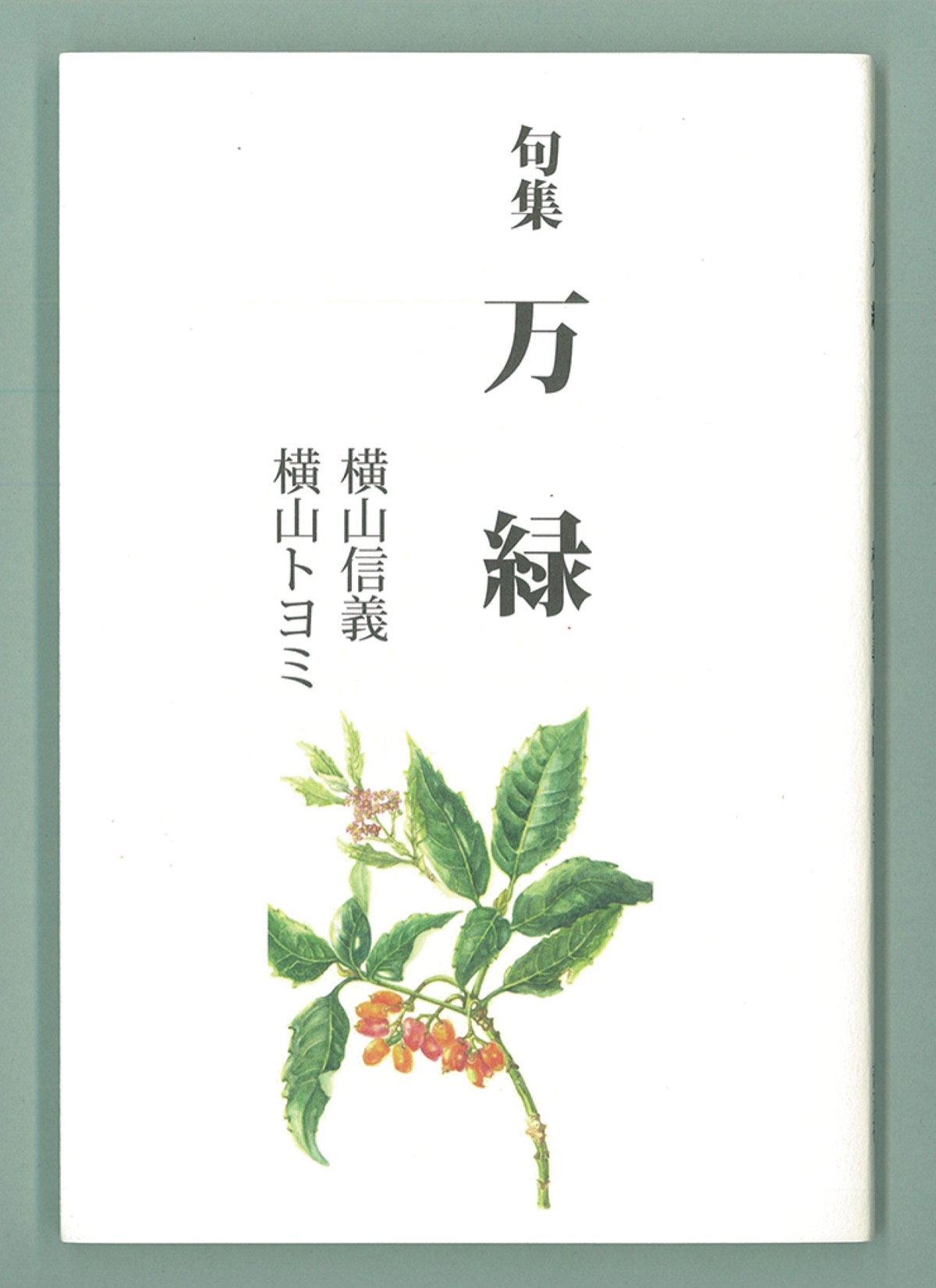 表紙絵には題名の「万緑」にふさわしいと、ボタニカルアートを趣味にしているトヨミさんが描いたアオキの絵を用いた。句集は私家版(蒼天社発行)として作り、親類や句友などに配った。