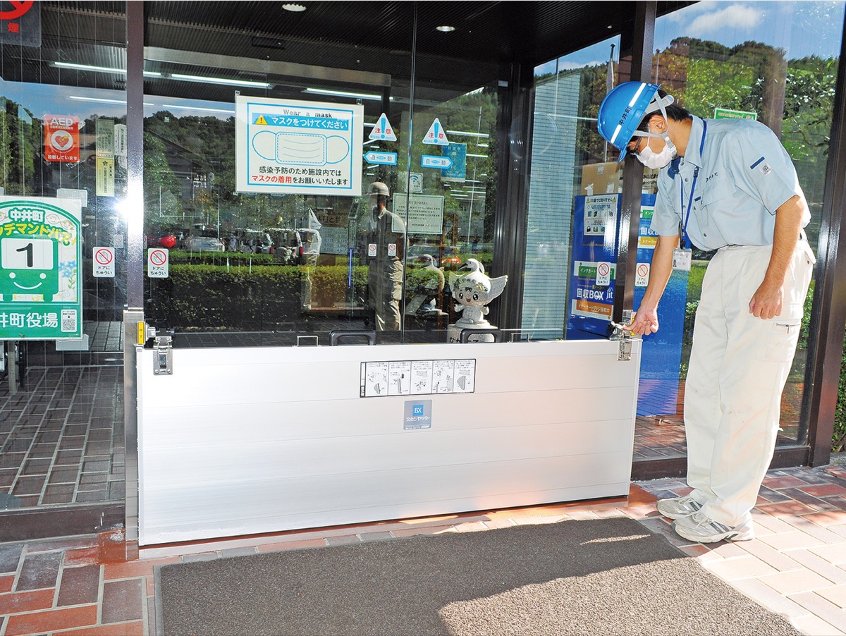 止水板の設置は「防災拠点となる役場庁舎で災害対応業務を継続して行えるようにする」(同町)ための防災体制強化の一環。今年度は地域防災計画の改定やハザードマップの多言語化、井ノ口小学校へのマンホールトイレ整備なども行う。