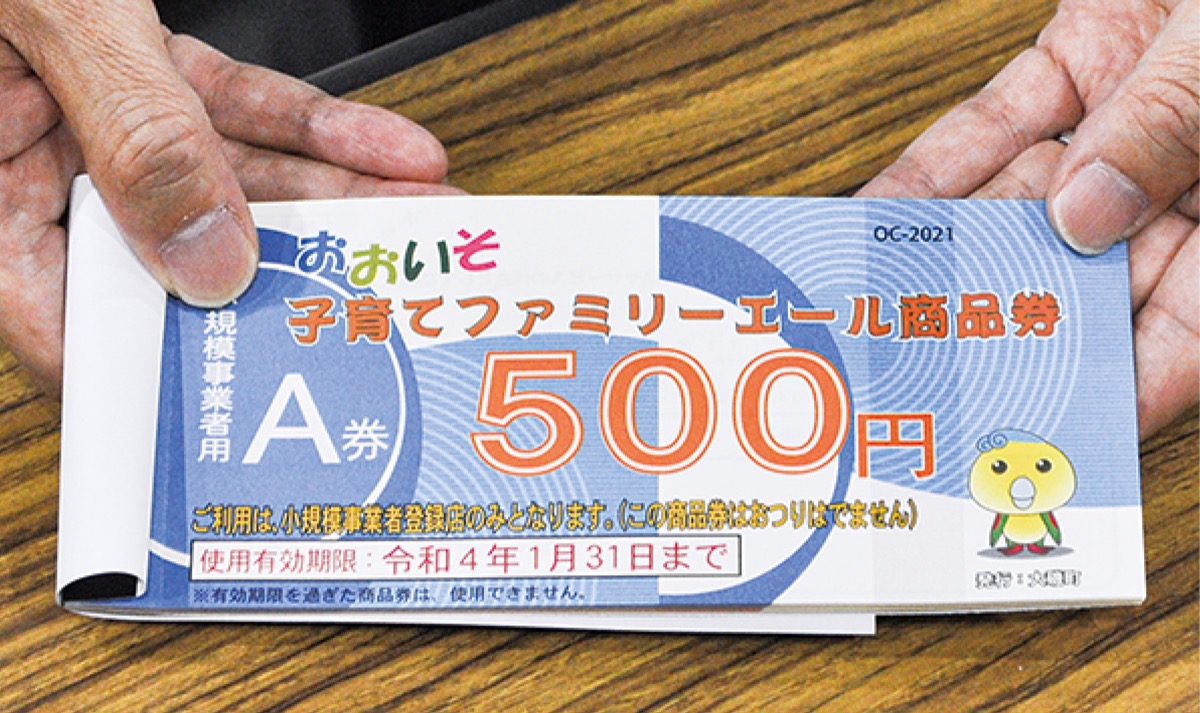 新型コロナウイルスの影響を受ける子育て世帯を支援しようと、大磯町は妊婦を含む中学生以下の子どもがいる世帯に対し、町内の店舗で使用できる「大磯町子育てファミリーエール商品券」を発行した。10月下旬に簡易書留で発送し、11月1日から利用可能。町内消費による地域経済の活性化にも期待する。