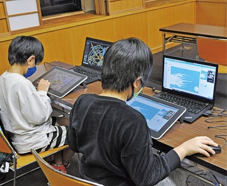 液晶ペンタブレットを使って描いた絵をプログラムで動かす講座が10月から大磯町立図書館で開かれ、大磯町の小学生6人が11月中旬の発表に向けて、週1回の作品制作に励んでいる。