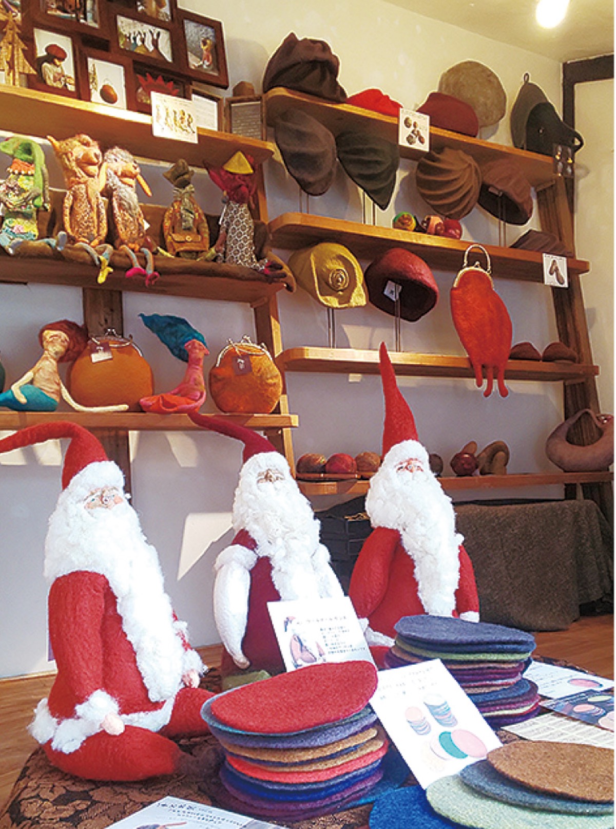 ウールアートのYOMORUさんとクレイアートのk.m.さんの手により自然素材から生み出された作品を展示=写真。立体ベレー帽やウール人形、粘土ブローチ、刺繍など。午前11時から午後5時(最終日は4時)まで。問い合わせはメール【メール】info.tsukiyama@gmail.comへ。