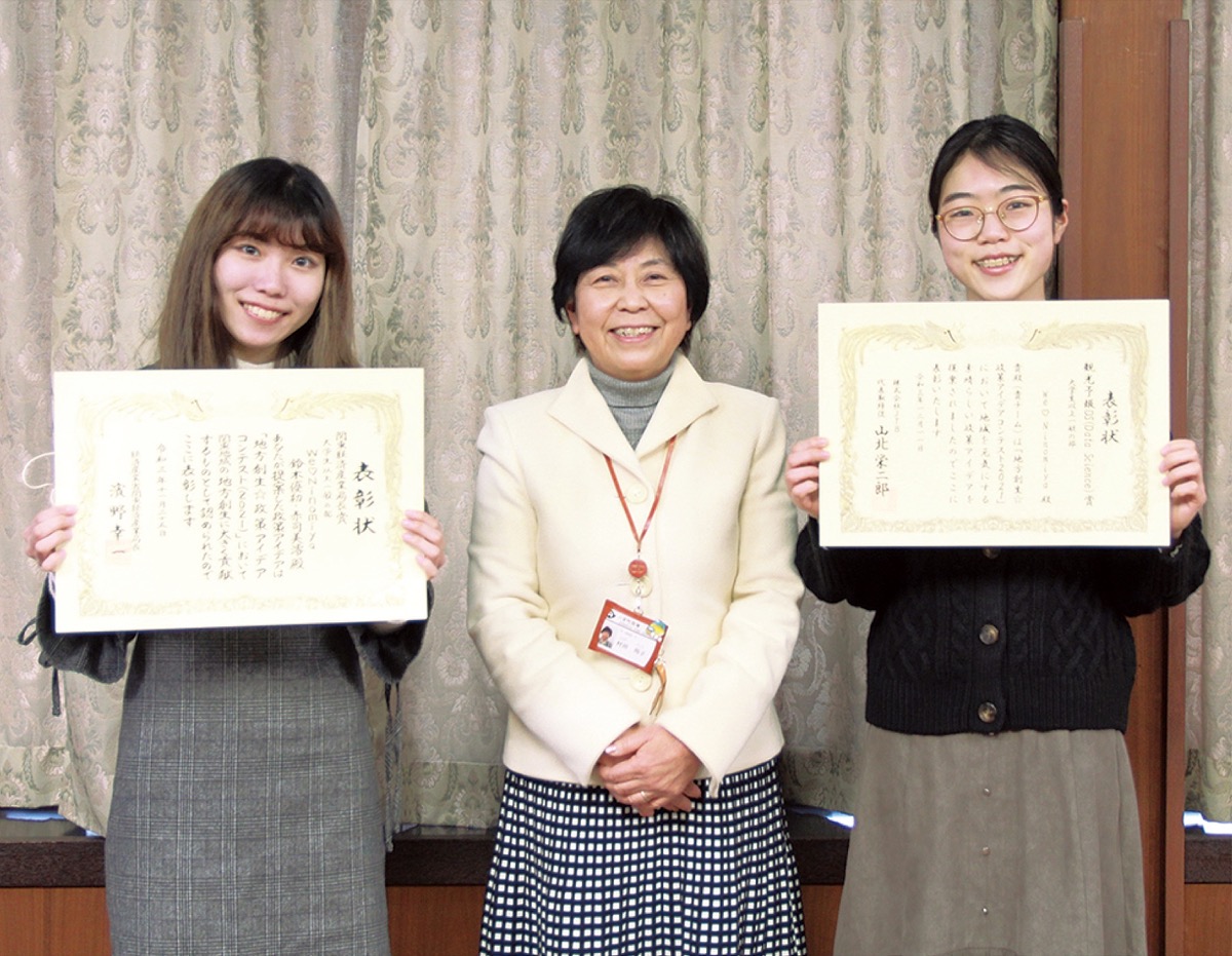 二人は1月20日、村田邦子町長へ受賞報告をするために町役場を訪問した。村田町長から「若い人が二宮町をテーマに、積極的に提案してくれるのは心強い。今後も町に関わり、気づいた点があればどんどん提案してほしい」と激励を受けた。