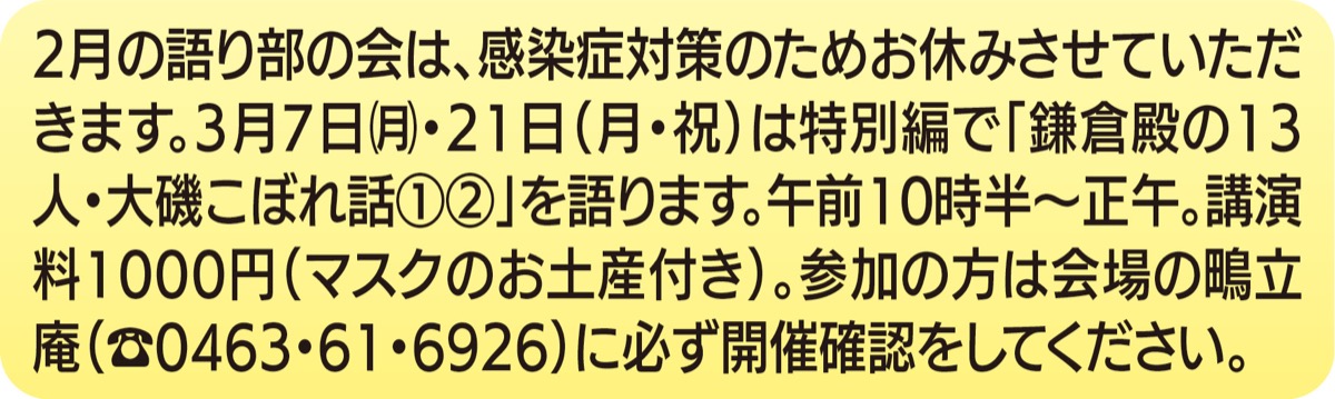 ところがここからが大変でした。善次郎には、二つの障害がありました。一つは、三男二女を失っていた両親にとっては唯一の男子である善次郎は安田家を継がせるべき大事な跡取りでした。江戸行きを承諾してくれるはずもなく、彼は両親に黙って家を出る決心をしました。もう一つは、「通行券」がもらえない事です。黙って家を出る訳ですから。こんなことからこの家出は連れ戻されたりを繰り返し、やっと江戸に行くことが出来ました。彼は、江戸で見聞きしたことから必ず成功して1千両の分限者になって錦を飾って帰ると約束し、その結果ついに両親がこれを許可することになり、安政5年(1858)晴れて江戸に向かうことが出来ました。次回からは江戸での彼を楽しみにして下さい。(敬称略)